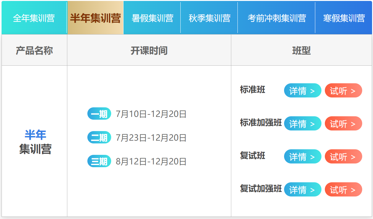 经典集训营课程设置 长期/短期集训营 全年顺次开班